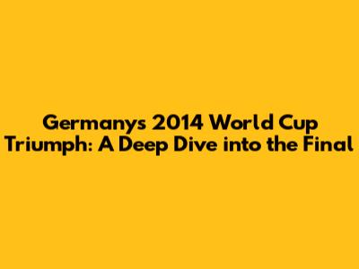 The 2014 FIFA World Cup in Brazil was a tournament filled with drama, excitement, and unforgettable moments. But for German football fans, it culminates in a single, glorious memory: the Germany national football team's victory in the final against Argentina. Guys, let's take a journey back to that historic day and dissect what made this triumph so special. Weâll explore the key players, the tactical masterclass, and the sheer emotional rollercoaster that led to Germany lifting the trophy.
