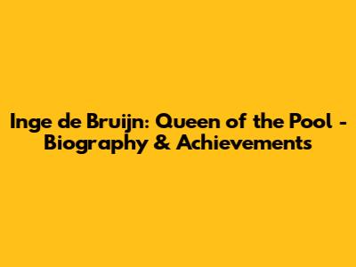 Inge De Bruijn: Queen Of The Pool - Biography & Achievements