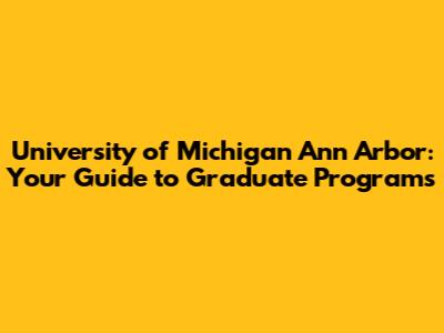 University Of Michigan Ann Arbor: Grad Programs Guide